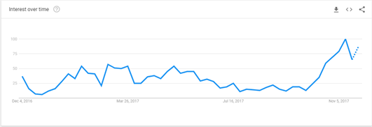 Figure 1: Tendances de recherche sur Google pour la thématique « corruption politique ». Date : 3 décembre 2017